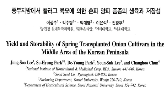 Jeong, Dae-Sung, Hong, Yun-Pyo, and Lee, Youn Suk Journal of Horticultural Science and Technology 24, no. 1 (2006): 48-55.